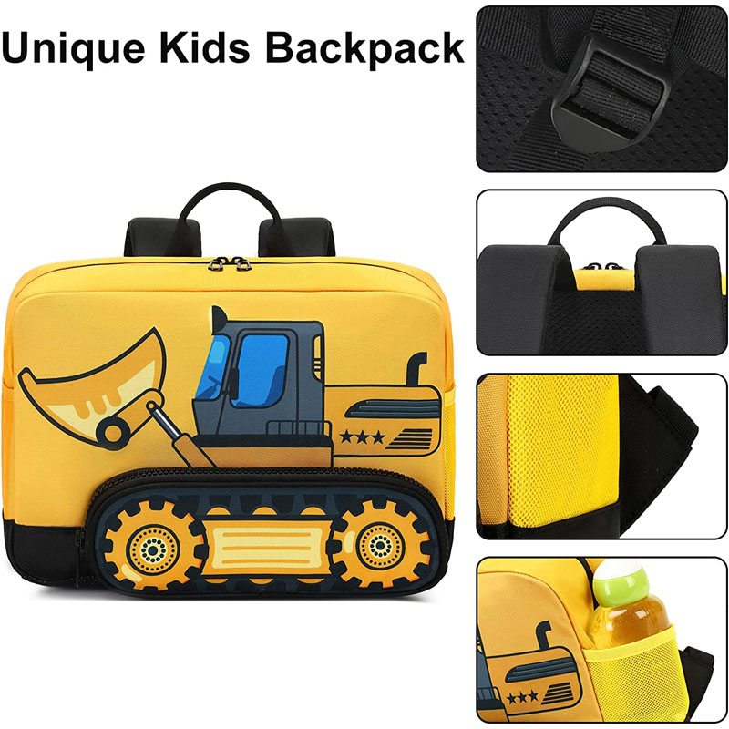 · Détails attrayants – Sac à dos de camion préscolaire super mignon pour garçons avec roues d'excavatrice 3D, bande réfléchissante qui le rend plus facile à repérer la nuit ou dans le brouillard. Les bretelles sont respirantes et confortables, et les sangles de poitrine maintiennent le sac en place. Il y a des particules antidérapantes au fond, qui peuvent être placées sur le sol quand vous en avez besoin.